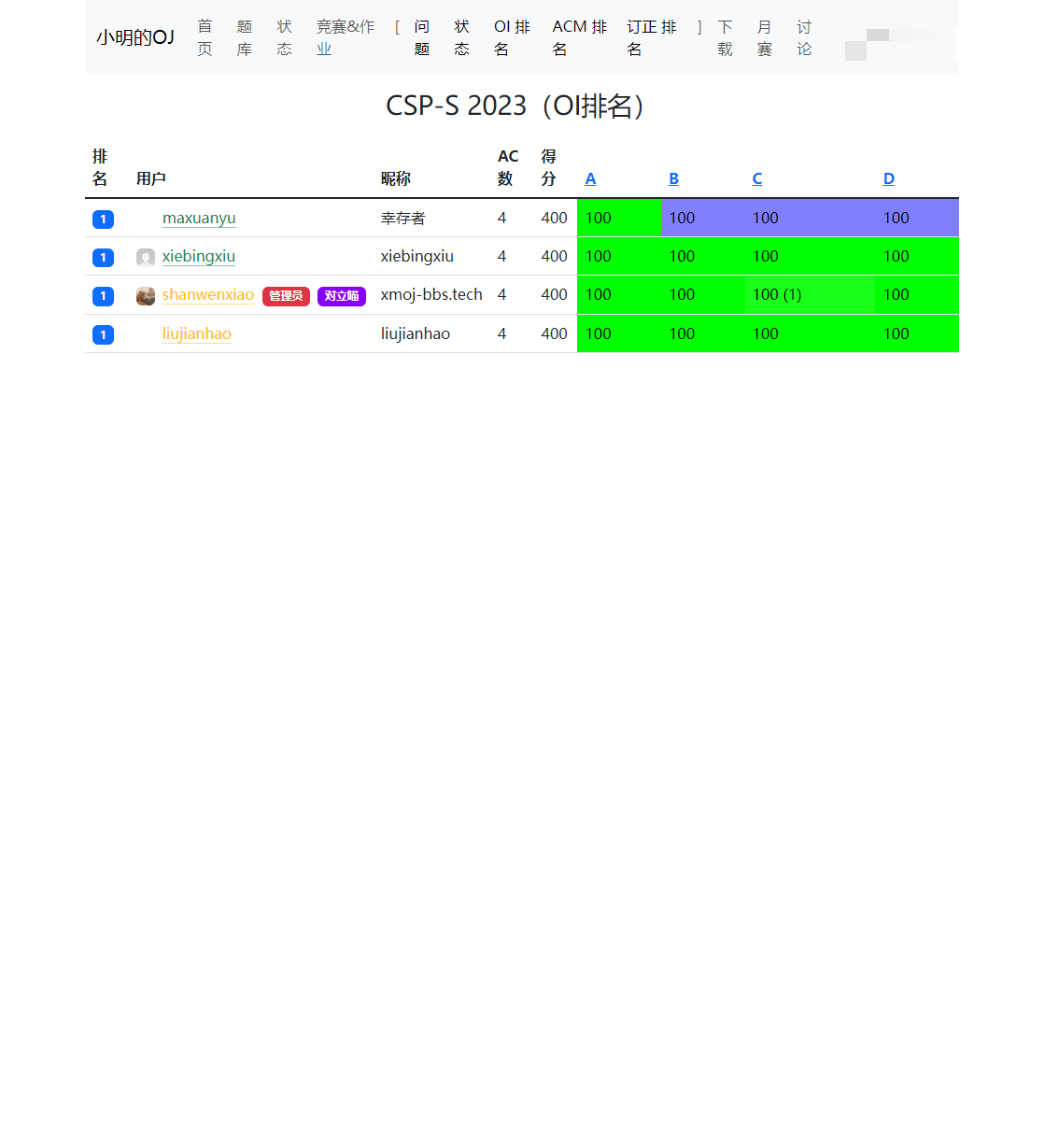 小明的OJ增强脚本 (XMOJ-Script) 在多个方面提供了有益的功能和改进。 首先,通过比赛ACM排名和下载功能,用户可以更方便地浏览比赛的排名情况,并且能够将相关信息下载以备离线查阅,这对于参赛者和观众来说都是一项实用的功能。 界面美化方面,采用新版的Bootstrap样式库、彩色文字和暗色模式等,能够显著提升用户界面的视觉吸引力和舒适度。